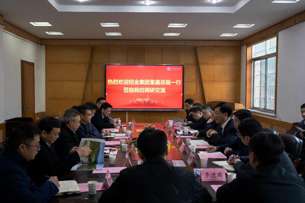 是一所具有使命担当的大学,招金集团发展迅速,已经是中国黄金开采的“排头兵”企业,双方的合作前景光明。然后详细介绍了企业当前的发展状况、取得的成绩和生产中遇到的困境,并表示针对这些情况双方可以进一步探讨合作,为取得更多的成绩而努力。