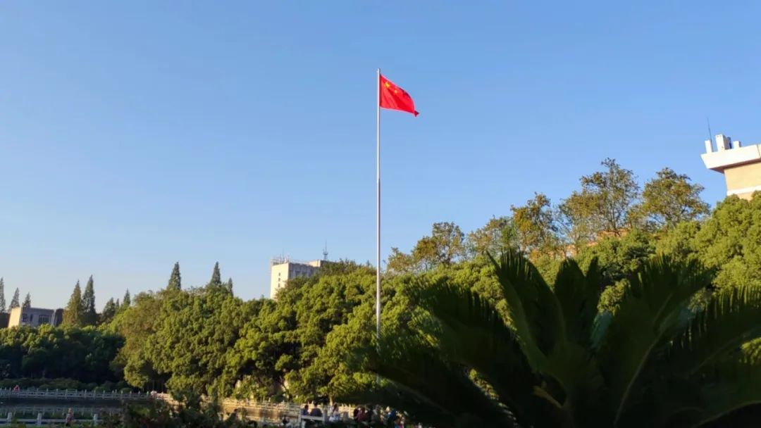 仪仗队迈着整齐而又矫健步伐护送中华人民共和国国旗入场。伴随着雄壮的义勇军进行曲,鲜艳的五星红旗在朝阳的映衬下冉冉升起,迎风飘扬。全院师生怀着对祖国的崇高敬意,齐唱国歌,向国旗行注目礼。