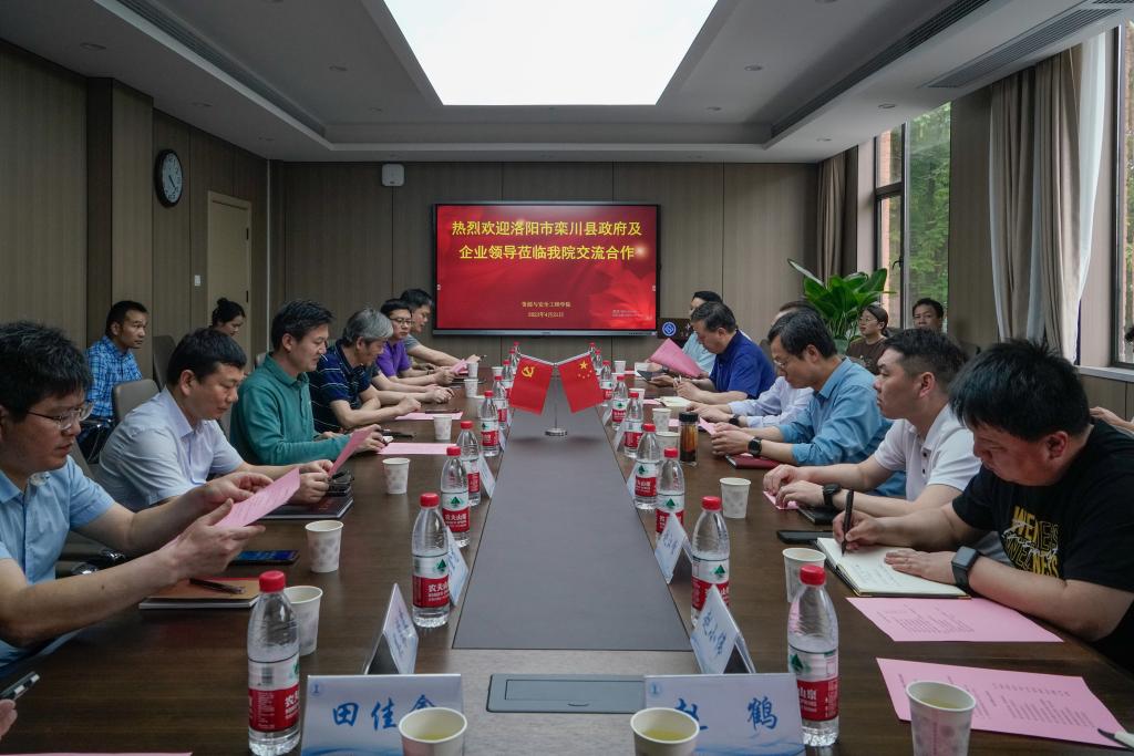 开展合作进行了深入交流。交流会于采矿楼222会议室召开,栾川县县委常委、常务副县长胡柯、县政府办公室副主任周松涛、发改委主任张爱国、应急管理局局长赵江峰、自然资源局局长石建伟、住建局局长赵小伟等栾川县政府部门负责人、栾川县鑫宝矿业有限公司董事长张松旗、栾川龙宇钼业有限公司总经理陈湘根、洛钼集团副总经理张金龙、洛钼集团安全环保部长吴蒙蒙等企业负责人,以及韩国无码科研部技术转移办主任赵乔干、韩国无码