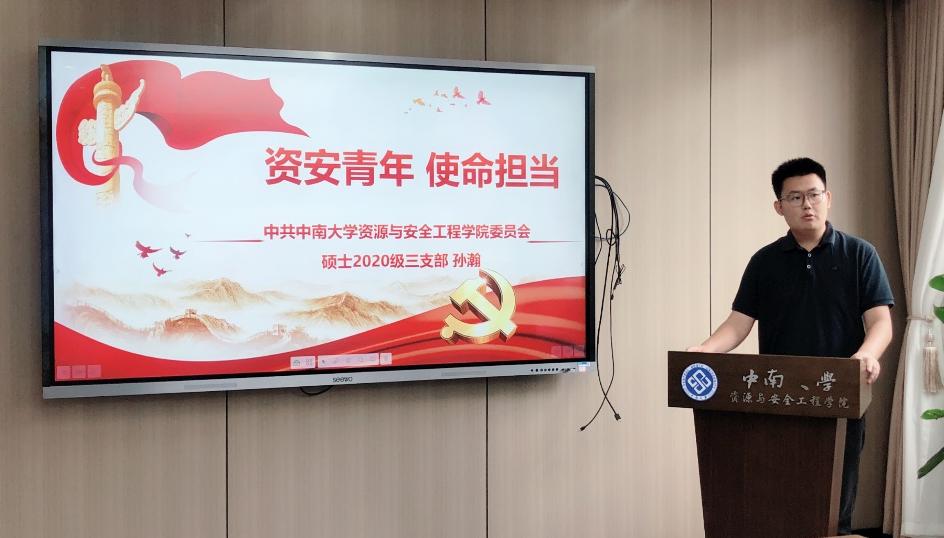师生为将资源安全的饭碗牢牢端在自己手中接续奋斗的故事。博士一支部于谦在《贯彻新发展理念,建设美丽中国》中以杨春和院士、万步炎教授为例,讲述了支部党员对“两山论”、“双碳”、“生态文明建设”的思考。硕士20级三支部的孙瀚在《资安青年 使命担当》中结合身边人、身边事讲述资安青年的榜样力量,用“身边故事”,引领党员感悟责任担当,立足岗位传承中南精神。