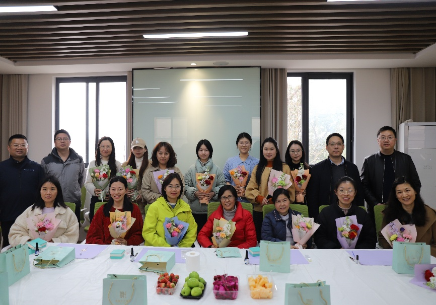 ,向在场女教师送上鲜花,致以诚挚的节日祝福,感谢大家一直以来在教学、科研、管理等岗位上的辛勤付出。随后,大家亲切合影留念,定格美好瞬间。