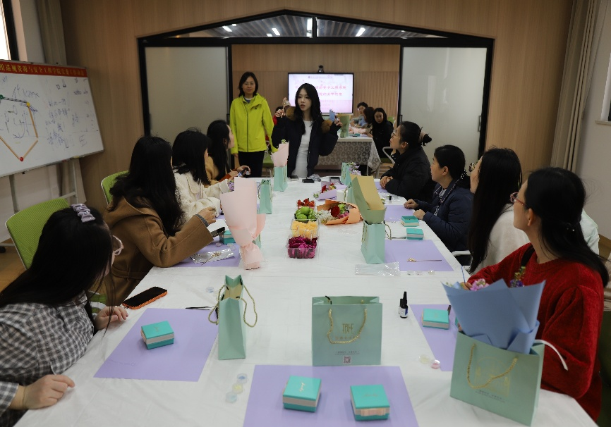 女教职工欢聚一堂,在指尖艺术中感受非遗魅力,共度温馨节日。